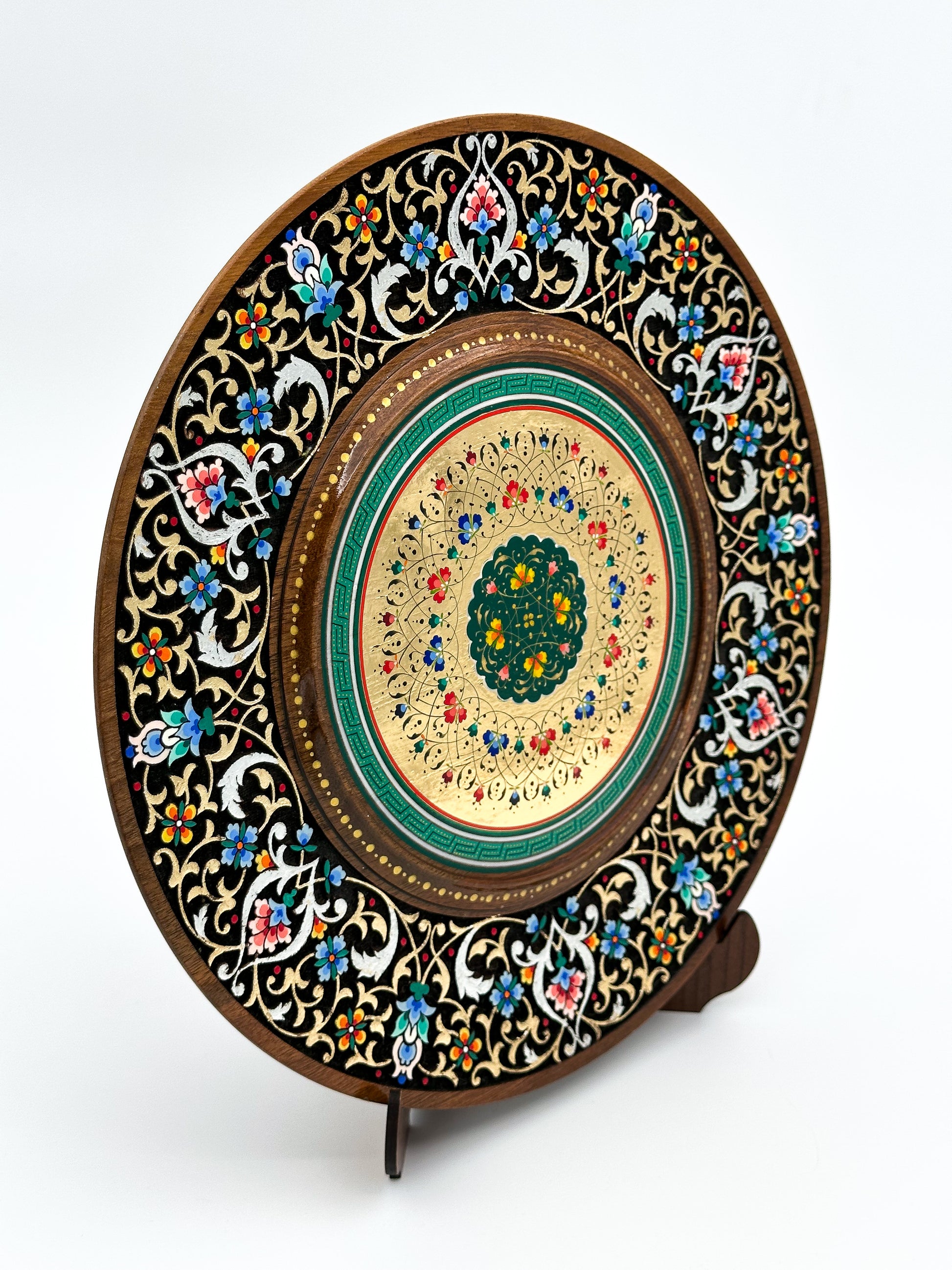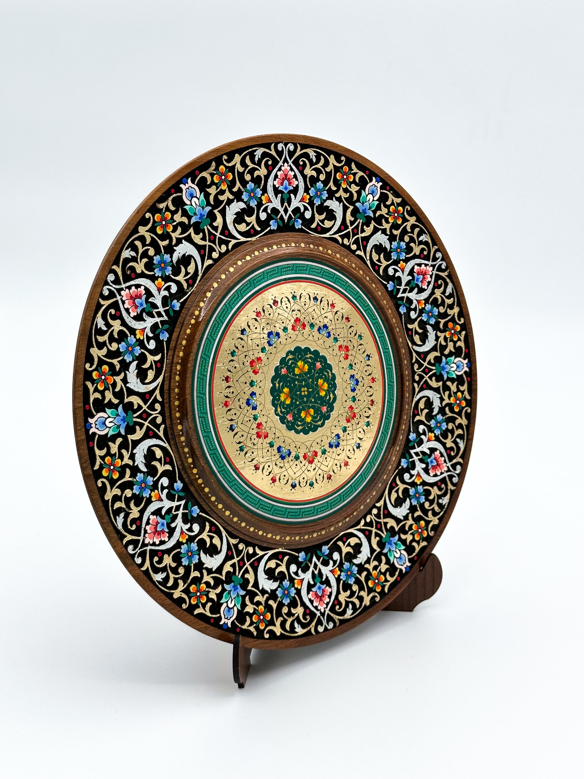 Introducing the Floral Harmony Decorative Wall Plate – a stunning fusion of traditional craftsmanship and intricate artistry. Hand-carved from premium wood, this piece is adorned with vibrant floral patterns in a rich, multi-colored palette, evoking the beauty of Uzbekistan’s cultural heritage. The detailed artwork, featuring exquisite gold accents and delicate brush strokes, adds a sense of elegance and sophistication to any space. Complete with a stand, this wall plate is perfect for display on shelves, tables, or walls, making it an ideal choice for collectors and admirers of fine art. Transform your home with this timeless masterpiece!