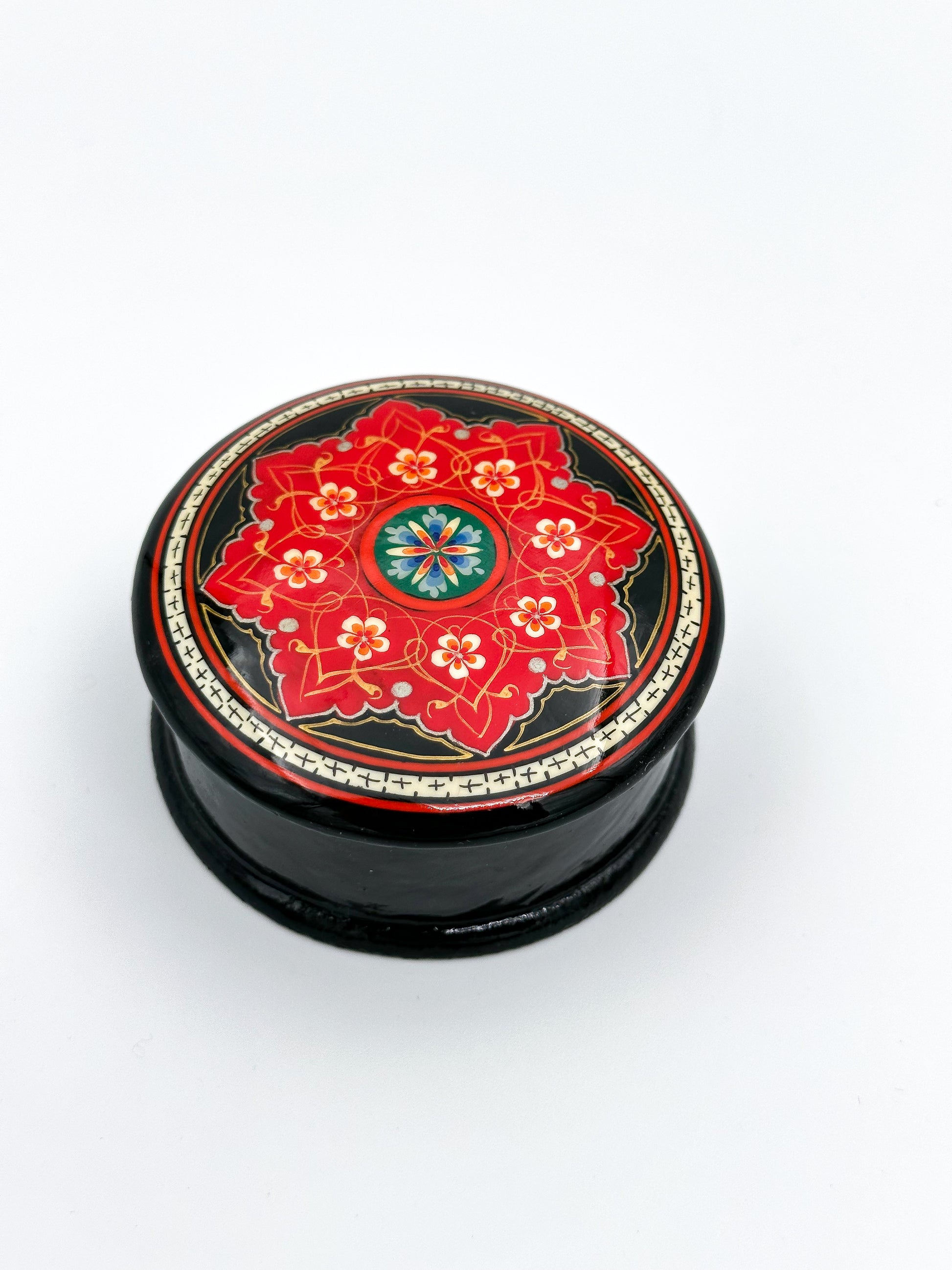 Introducing the Blossom Small Jewelry Box – a masterpiece of craftsmanship and elegance, designed to keep your precious treasures safe and stylishly stored. Hand-painted with intricate floral patterns, this jewelry box exudes charm and sophistication. The rich, glossy finish and bold colors make it the perfect centerpiece for your vanity or gift for a loved one. Compact yet spacious enough to hold your most cherished items, the Blossom Small Jewelry Box combines traditional artistry with functional beauty. Unlock timeless elegance every time you open it!