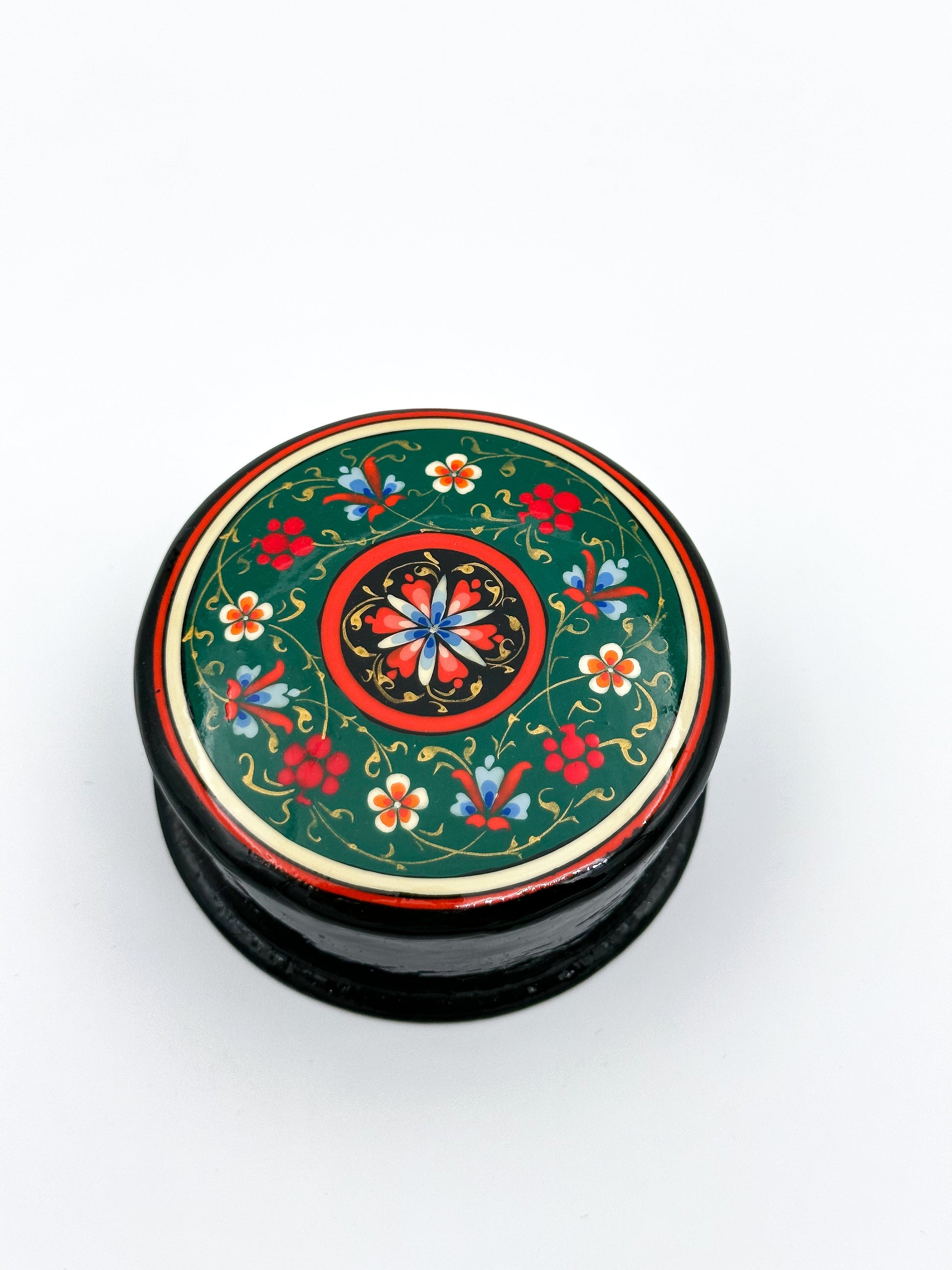 Introducing the Emerald Blossom Small Jewelry Box – where tradition meets elegance. Hand-painted with intricate floral designs in a stunning emerald green, this exquisite jewelry box isn’t just storage — it’s an art piece. Its smooth, lacquered finish adds a touch of sophistication to any vanity or shelf, while the vibrant colors bring a sense of cultural richness to your home. Whether you’re storing precious trinkets or simply adding a decorative touch, the Emerald Blossom Keepsake Box is the perfect blend of beauty and craftsmanship. Make it yours today and experience the charm of timeless artistry!