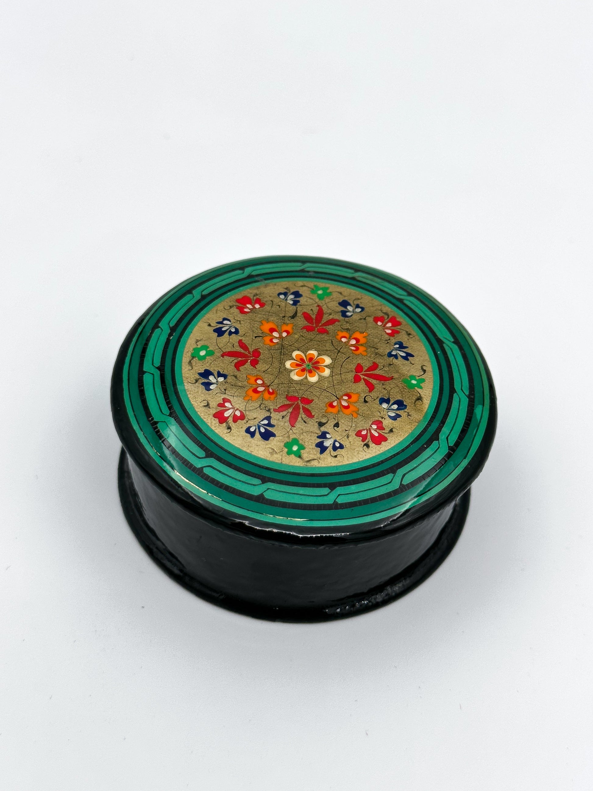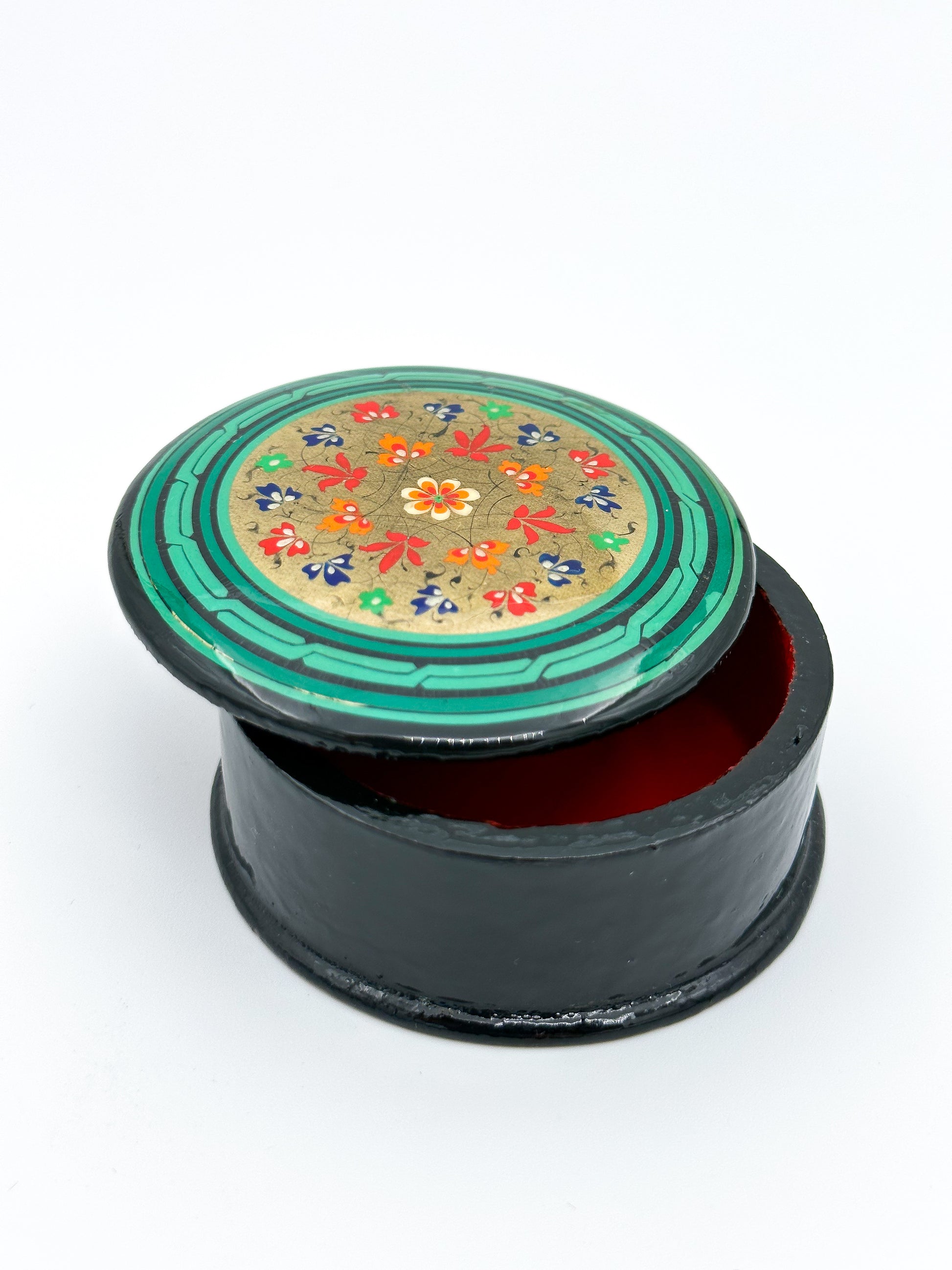 Introducing the Ornate Floral Elegance Small Jewelry Box – where craftsmanship meets beauty. This exquisite handcrafted piece is adorned with vibrant floral motifs, each detail painted with precision and care. The rich, glossy finish adds a touch of sophistication, while the velvet-lined interior ensures your most treasured pieces are stored in style. Perfect for adding a burst of color to any space, this jewelry box isn't just functional, it's a true work of art. Elevate your jewelry storage with a piece that reflects the elegance and artistry of traditional craftsmanship.