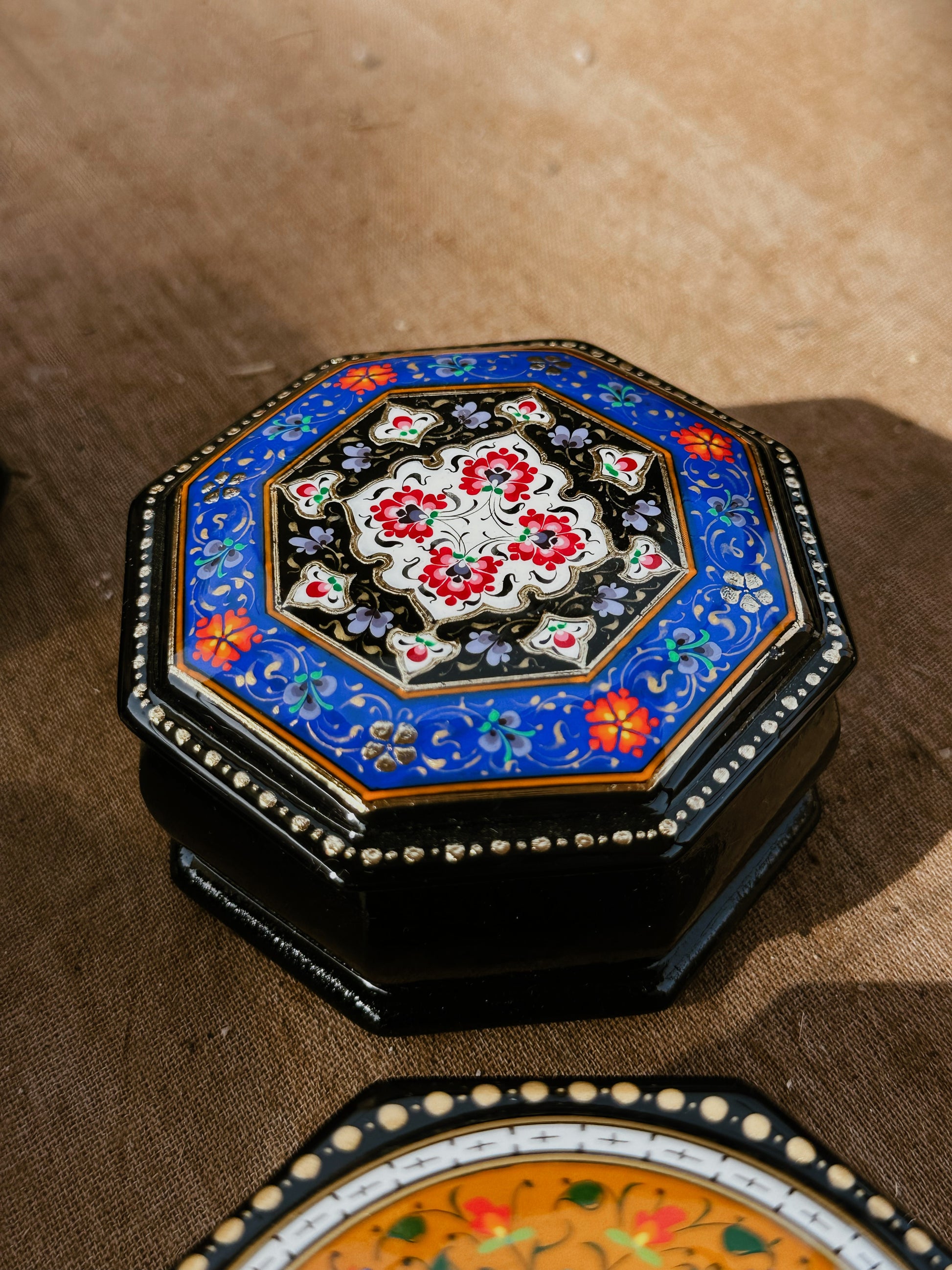 Embrace the artistry of Uzbekistan with our Samarkand Treasure Boxes, each meticulously handcrafted and painted by skilled artisans. With a diameter of 10x10 cm, these exquisite boxes feature vibrant colors and intricate patterns inspired by the rich cultural heritage of Samarkand. Perfect for storing jewelry, keepsakes, or small treasures, each box is a unique work of art that brings a touch of traditional elegance to any space. Celebrate the beauty and craftsmanship of Uzbekistan with these stunning, one-of-a-kind pieces.